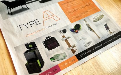 BONE Creative developed every aspect of the Type A brand, from its name and visual identity to signage and advertising, in-store and online. To check out the results of this project in person, visit Type A (located inside Parc Modern) at Uptown Mall in Victoria, BC, or conveniently shop online at their website.