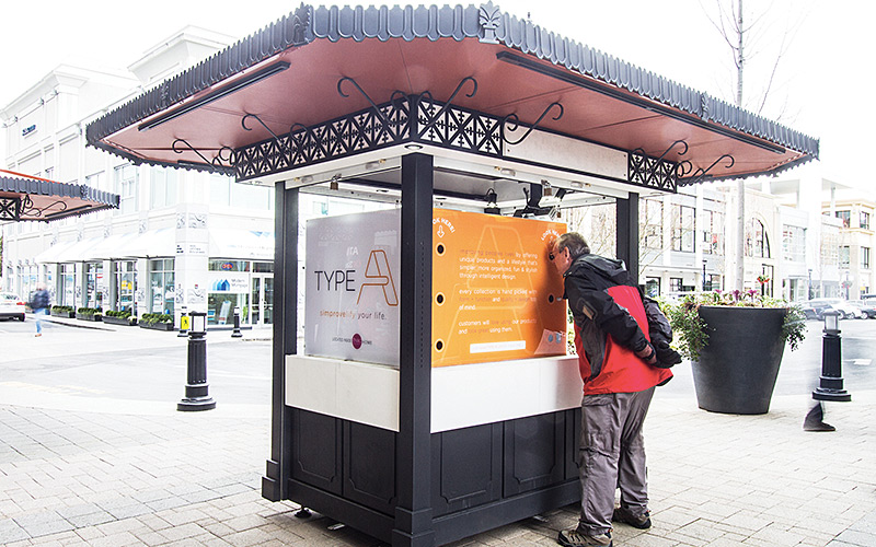 This campaign included a series of window icons to draw in walk-through traffic, an engaging marketing kiosk on the Uptown main level, and several ads in significant print publications in the Victoria market.